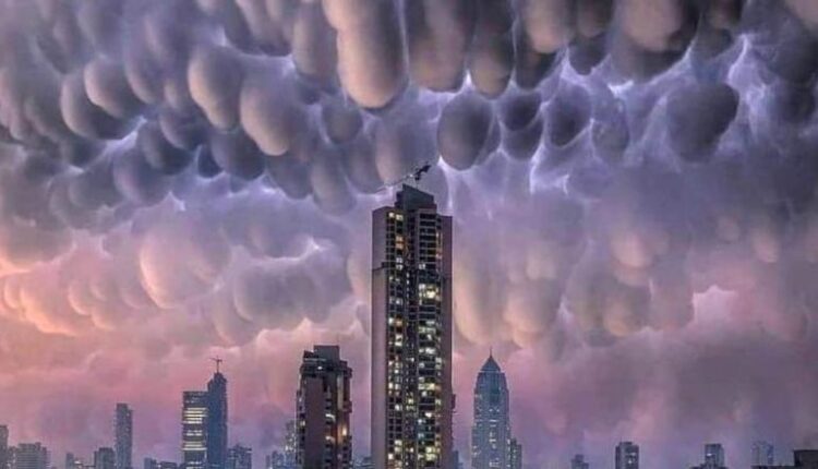 وجاء في التعليق المرافق “سحب الماماتوس في سماء مدينة مومباي الهندية”.