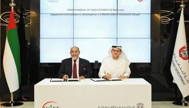 ووقع محمد علي محمد الشرفاء الحمادي رئيس دائرة التنمية الاقتصادية – أبوظبي، والدكتور سيد حامد سيد جعفر البر، رئيس مؤسسة المنتدى الاقتصادي الإسلامي العالمي اتفاقية استضافة الدورة الـ14 للمنتدى.