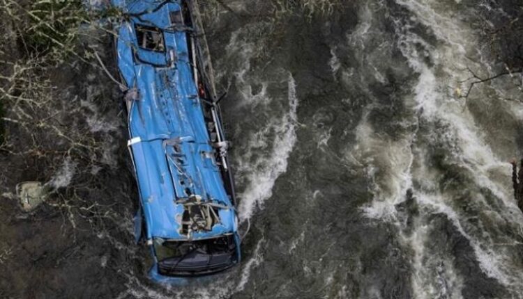 قتل ستة أشخاص وأصيب اثنان آخران عشية عيد الميلاد في حادث سقوط حافلة من علوّ عشرات الأمتار في نهر هائج في شمال غرب إسبانيا.