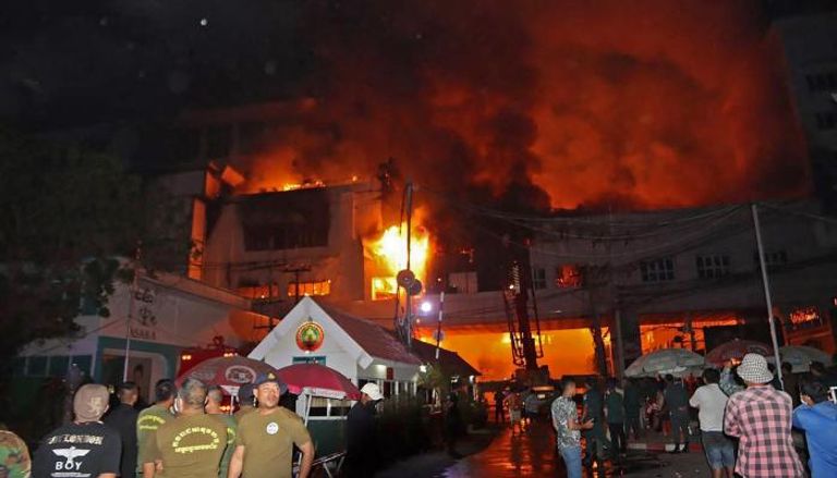 لقي 10 أشخاص مصرعهم في حريق فندق وكازينو في كمبوديا يقع بالقرب من الحدود مع تايلاند، الخميس.