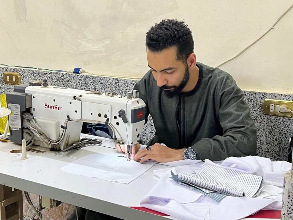 بالخيط والإبر تنسج أصابعه تلك القطعة الفنية المختلفة من نوعها التي تحمل بين طياتها رائحة التراث الشعبي وروح الصعيد داخل أروقة القاهرة.