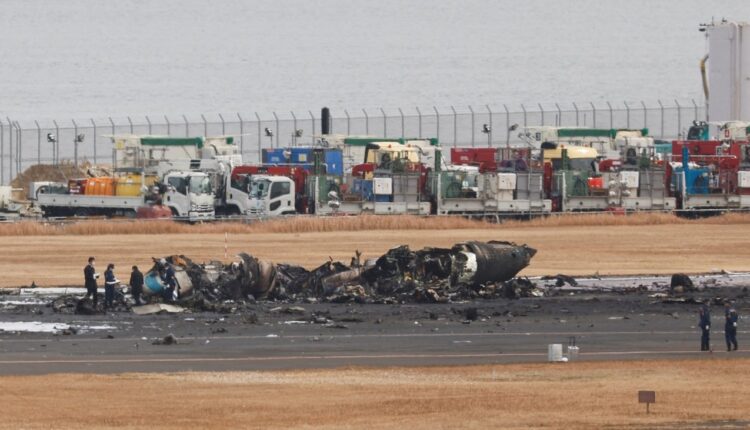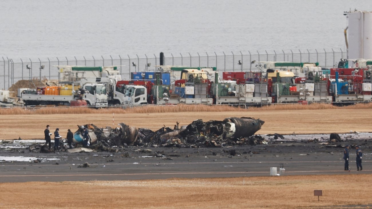 في النهاية، أصيب راكبان فقط بكدمات أو التواء أطراف.ويحقق خبراء من اليابان وفرنسا وبريطانيا وكندا، اليوم الخميس، في أسباب الحريق فيما ما زال هيكل الطائرة المتفحم وقطعها المتناثرة على أحد مدارج مطار هانيدا الأربعة.وعُثر على جهازي تسجيل بيانات الرحلة والصوت لطائرة خفر السواحل، وعلى جهاز تسجيل الصوت فقط لطائرة الركاب.