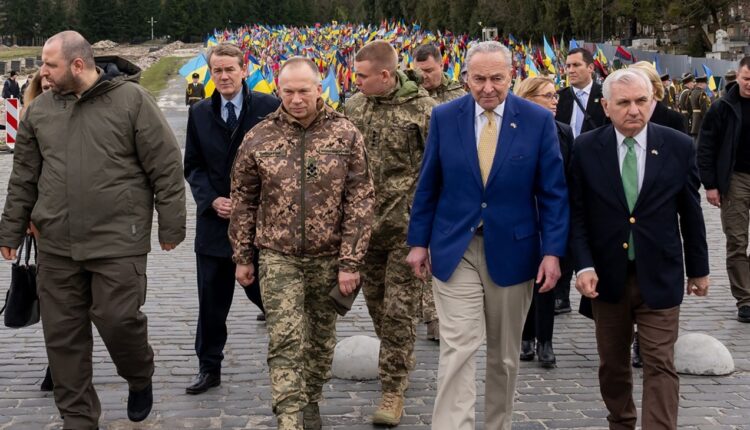 وقال شومر، في بيان من مدينة لفيف بغرب أوكرانيا: “نحن هنا لنظهر للشعب الأوكراني أن أميركا تقف معه وسنواصل القتال للحصول على التمويل الذي يحتاجه بشدة ويستحقه”، مضيفا “لن نتوقف عن القتال حتى نحصل على المساعدات”.