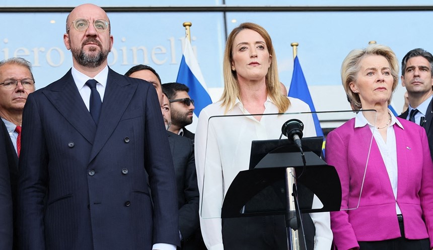 وكتب كلّ من رئيسة المفوضية الأوروبية أورسولا فون دير لايين، ورئيس المجلس الأوروبي شارل ميشال، ورئيسة البرلمان الأوروبي روبرتا ميتسولا، في نص مشترك “أكثر من أي وقت مضى، نبقى متحدين ومخلصين لوعدنا بدعم أوكرانيا طالما كان ذلك ضرورياً”.وأكد النص أنّ الاتحاد الأوروبي سيواصل دعمه “السياسي والعسكري والمالي والاقتصادي والدبلوماسي والإنساني” لمساعدة أوكرانيا “في الدفاع عن نفسها وحماية شعبها ومدنها وبنيتها التحتية الحيوية واستعادة وحدة أراضيها”.