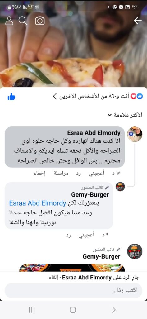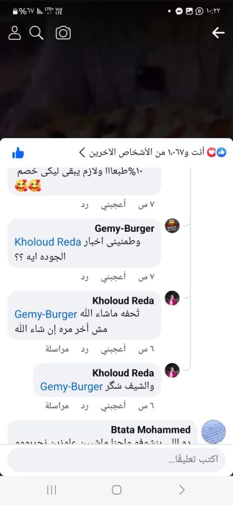 أود أن اختم حواري بشكر رئيس الحى اللواء محمد صحصاح الذي قام بمساعدة Gemy burger بكل ما لديه من جهود، وأود أن أوجه شكري لكل من قام بدعمي ودعم Gemy burger سواء بالتعامل معنا أو بالتعليق على منتجاتنا سواء بالايجاب أو بالسلب لأن كل التعليقات نقوم بمعالجتها ومعالجة كل السلبيات لكي ننال إعجاب الجميع.