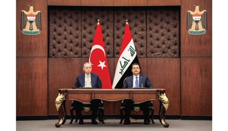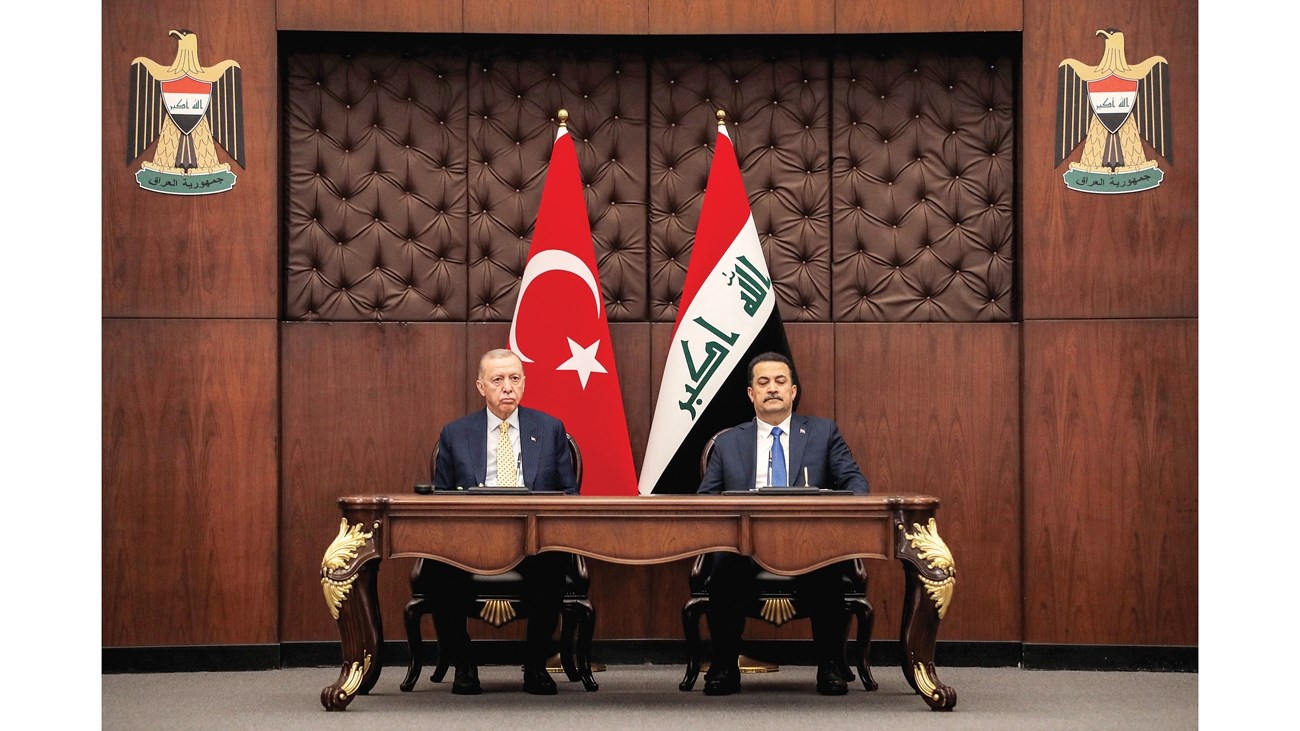 وقَّع رئيس الوزراء العراقي محمد شياع السوداني والرئيس التركي رجب طيب أردوغان، اتفاقيتين إطاريتين للتعاون الثنائي، و24 مذكرة تفاهم في شتى المجالات. وقال السوداني، في مؤتمر صحفي مشترك مع أردوغان الذي يزور العراق حالياً، إن البلدين وقعا اتفاقية للإطار الاستراتيجي لتكون خريطة طريق لبناء تعاون استراتيجي مستدام في المجالات كافة، على أن تنبثق منها لجان دائمة للأمن والطاقة والاقتصاد. وأضاف أنهما وقعا كذلك اتفاقية للتعاون بشأن المياه، تتضمن تنفيذ مشاريع مشتركة تتعلق بتحسين إدارة المياه في نهري دجلة والفرات، وتنفيذ مشاريع تطويرية وتبادل الخبرات في مجال تحديث أنظمة الري وتقنياته الحديثة، وتستمر لمدة عشر سنوات. وأشار السوداني إلى أنهما رعيا كذلك توقيع 24 مذكرة تفاهم بين البلدين في مجالات وقطاعات مختلفة، لافتاً إلى أنهما بحثا التنسيق الأمني الثنائي لمواجهة التحديات التي يشكلها وجود عناصر مسلحة قد تتعاون مع الإرهاب، وتخرق أمن البلدين، وكذلك وجود مناطق رخوة تحتاج إلى المزيد من السيطرة والاستقرار في مناطق حدودية مشتركة. وأكد رئيس الوزراء العراقي أنّ أمن العراق وتركيا وحدة واحدة لا تتجزأ، قائلاً: «نتمسك بعدم السماح لأي قوة أن تستخدم أرض العراق منطلقاً للاعتداء على الجوار».وأشار السوداني إلى أنه اتفق مع الرئيس أردوغان على التعاون الأمني الذي من شأنه تحقيق استقرار البلدين.بدوره، قال أردوغان إن الاتفاقيات والمذكرات التي وقعت تشكل نقطة تحول في العلاقات الثنائية بين البلدين، مبيناً أن الطرفين سيشكلان لجاناً دائمة مشتركة لضمان الاستمرار ومراقبة تنفيذ تلك الاتفاقيات والإشراف على المفاوضات الفنية في العديد من المجالات. وأضاف: «اتفاقية الإطار الاستراتيجي للتعاون المشترك التي وقّعناها مع رئيس الوزراء العراقي تشكل خريطة طريق قوية». وأوضح أن المباحثات تركزت أيضاً على التعاون في مجال الأمن ومكافحة الإرهاب باعتباره أحد أهم البنود التي نُوقِشَت. واستبق جلسة المباحثات الموسعة لقاء ثنائي بين السوداني وأردوغان، تناول مجمل العلاقات بين البلدين وسبل تطويرها في مختلف القطاعات والملفات ذات الاهتمام المشترك. كما تناول تطورات الأحداث في المنطقة، والتأكيد على أهمية تنسيق المواقف، وسبل منع انتشار الصراع والتوترات في المنطقة.يوم واحدوالتقى أردوغان في بغداد نظيره العراقي عبد اللطيف رشيد في قصر رئاسة الجمهورية.وذكرت دائرة الاتصال في الرئاسة التركية، في بيان، أن أردوغان ناقش مع نظيره العراقي العلاقات الثنائية بين البلدين، وقضايا إقليمية وعالمية، ومكافحة الإرهاب.وهذه هي الزيارة الأولى للرئيس التركي أردوغان إلى العراق منذ 13 عاماً، ويترأس فيها حالياً وفداً رسمياً كبيراً يضم عدداً من الوزراء، وتستغرق يوماً واحداً.