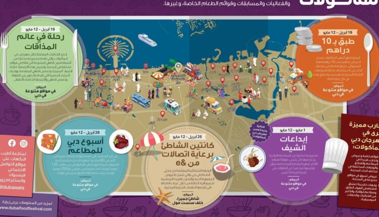 ويسلط المهرجان الذي تنظمه مؤسسة دبي للمهرجانات والتجزئة ويستمر حتى يوم الأحد 12 مايو المقبل الضوء على عالم الطهي والنكهات والتجارب الفريدة من خلال مجموعة رائعة من الأنشطة وقوائم الطعام الخاصة والفعاليات والمسابقات وغيرها. وتتضمن فعاليات المهرجان تجارب رائعة مناسبة لكل الأعمار والأذواق والميزانيات بدءاً من الأطباق الإماراتية الأصيلة إلى المفاهيم المحلية وصولاً للمطاعم العالمية الفاخرة مع العديد من الوجهات المناسبة للعائلات.