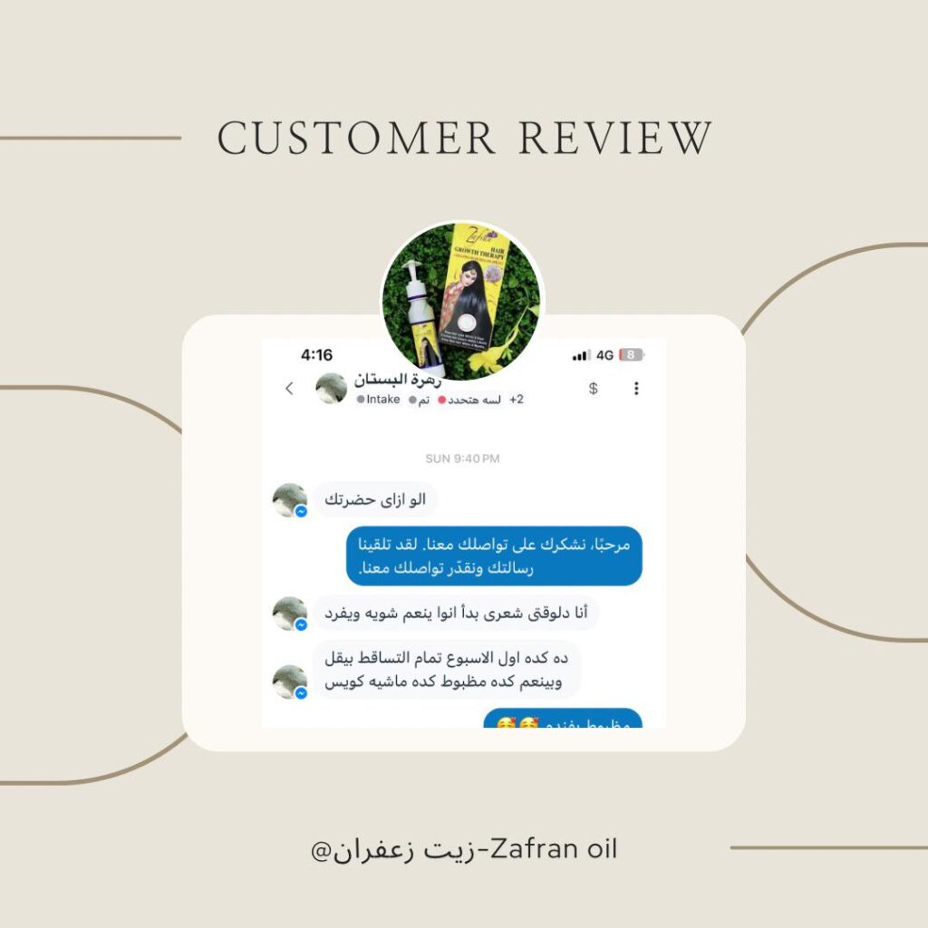 بالتأكيد ،بالنسبة لزيت زعفران هو خالي تماماً من اي مواد كيميائية وخالي تماما من المينوكسيديل وبمجرد ما توقفي استخدام بتكون النتائج ثابته يعني مش بيتاثر الشعر مره تانية بانقطاع الاستخدام ع عكس باقي الزيوت الموجودة في السوق المصري.