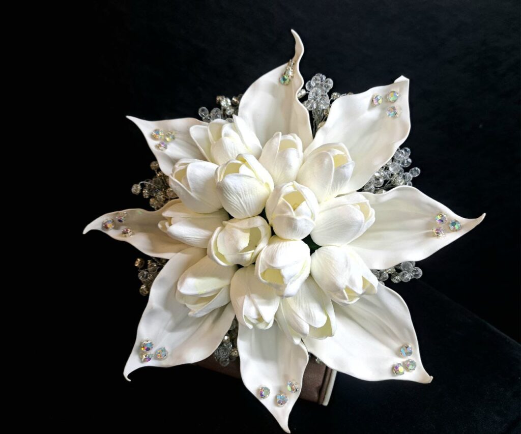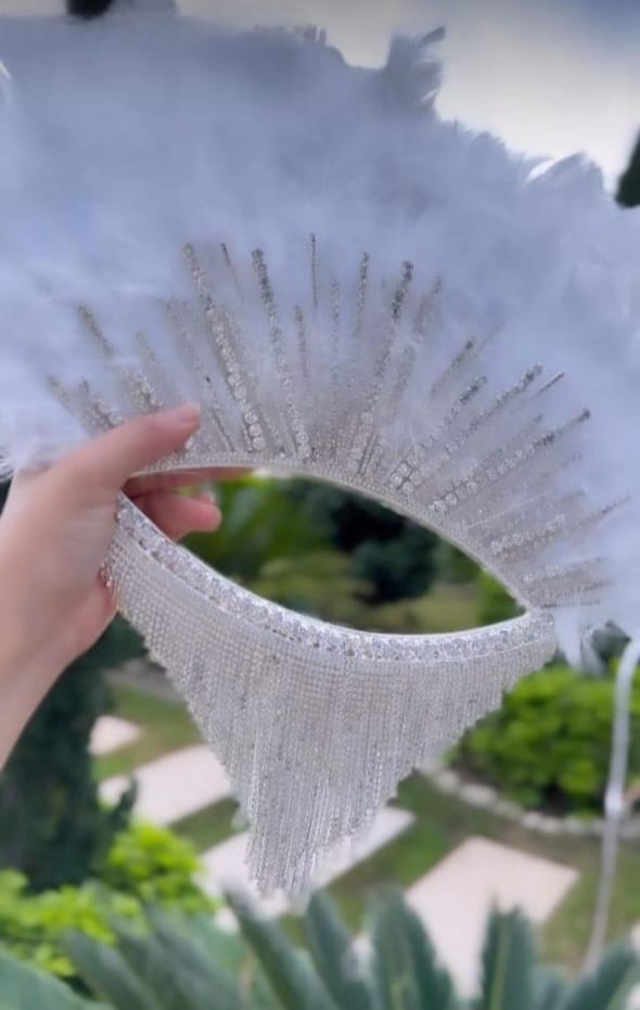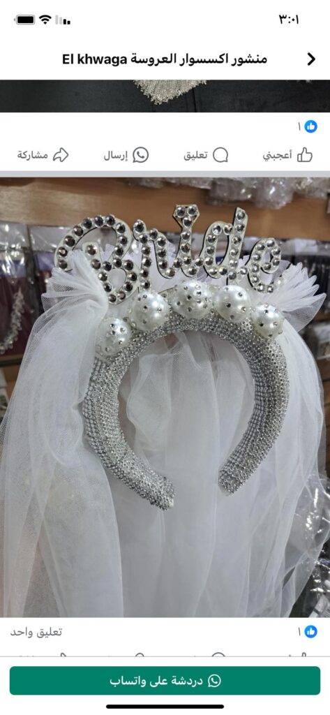 نحن نقوم بتصنيع كل الاكسسوارات التي تخص العرائس بداية من التاج والحلق والكوليه وأطقم كاملة كوليه بالاسورة والخاتم، ونقوم بتصنيع الفان أيضاً “مروحة العروسة” ويوجد أنواع عدة لتلك الفانز يوجد منها الماظ و يوجد منها مطلي فضة ويوجد خشب وتزيين بالريزين، والمرأة أيضاً يوجد منها أنواع عدة مثل الفان يوجد الماظ معدن وخشب مزين بالريزين واللولي، نقوم أيضاً بتصنيع الهير بيس والبوكية الالماظ المعدن والصولجان وروب العروسة مطبوع بالاسم، وصواني الشبكة ومنديل كتب الكتاب بالإضافة إلى سليبر العروسة ف مصنع الخواجه يضم كل المنتجات التي تحتاجها اي عروسة من الالف الى الياء.