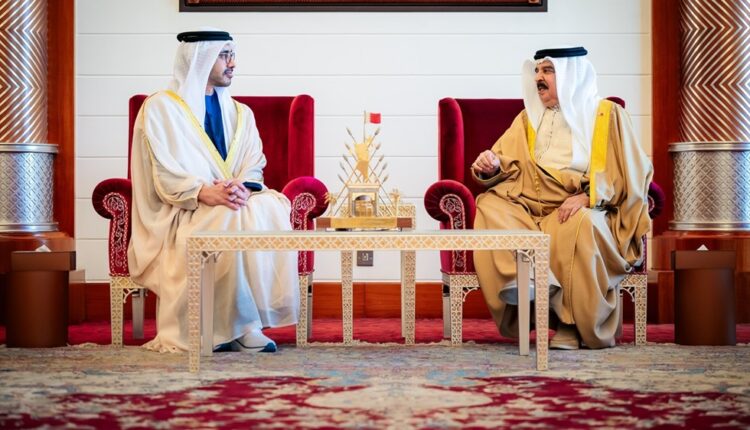 استقبل صاحب الجلالة الملك حمد بن عيسى آل خليفة، عاهل مملكة البحرين الشقيقة، في قصر الصافرية، سمو الشيخ عبدالله بن زايد آل نهيان، نائب رئيس مجلس الوزراء، وزير الخارجية، وذلك في إطار زيارة العمل التي يقوم بها سموه إلى المملكة للمشاركة في اجتماع الدورة الـ 12 من اللجنة العليا المشتركة بين دولة الإمارات ومملكة البحرين التي عقدت أمس.ونقل سموه لجلالته تحيات صاحب السمو الشيخ محمد بن زايد آل نهيان، رئيس الدولة، حفظه الله، وتمنياته لمملكة البحرين وشعبها الرخاء والازدهار.وحمل جلالته سموه تحياته إلى صاحب السمو الشيخ محمد بن زايد آل نهيان، رئيس الدولة، حفظه الله، وتمنياته لدولة الإمارات وشعبها دوام التقدم والازدهار.وأكد جلالته اعتزازه بالعلاقات الأخوية الوثيقة والراسخة التي تربط بين البلدين وقيادتيهما وشعبيهما الشقيقين، والحرص المتبادل على مواصلة تعزيزها وتنميتها في مختلف المجالات، انطلاقاً من الأواصر التاريخية المتينة التي تجمعهما.وأشاد جلالته بعمق العلاقات البحرينية الإماراتية المتجذرة والتي تشكل نموذجاً متميزاً ومثالاً يحتذى به للعلاقة بين الأشقاء الذين تربطهم روابط الأخوة ووحدة الرؤى والمواقف والمصير المشترك.