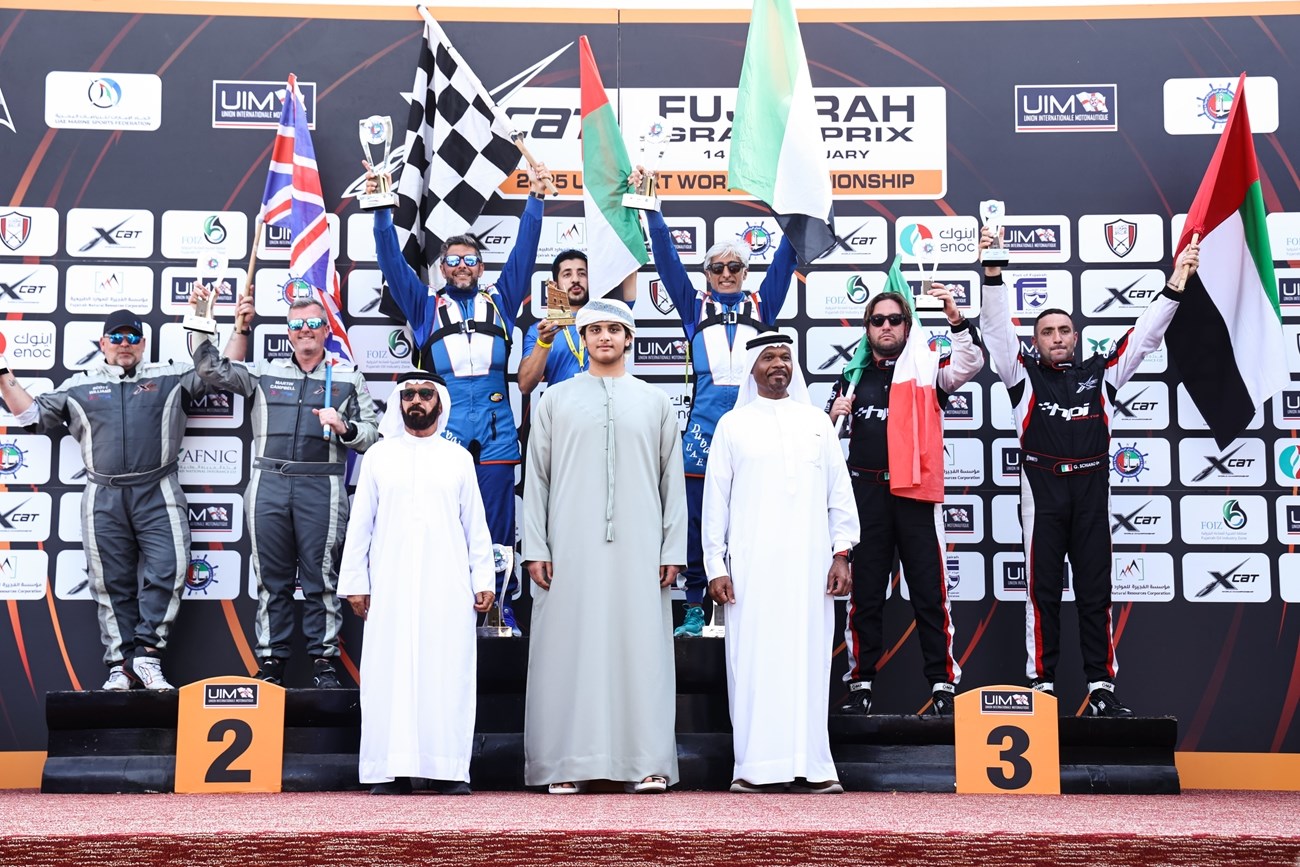 توج الشيخ حمد بن محمد الشرقي، نجل ولي عهد الفجيرة، زورق «فيكتوري تيم» بطلاً للجولة الأولى من بطولة العالم للزوارق السريعة «إكس كات» بالفجيرة.