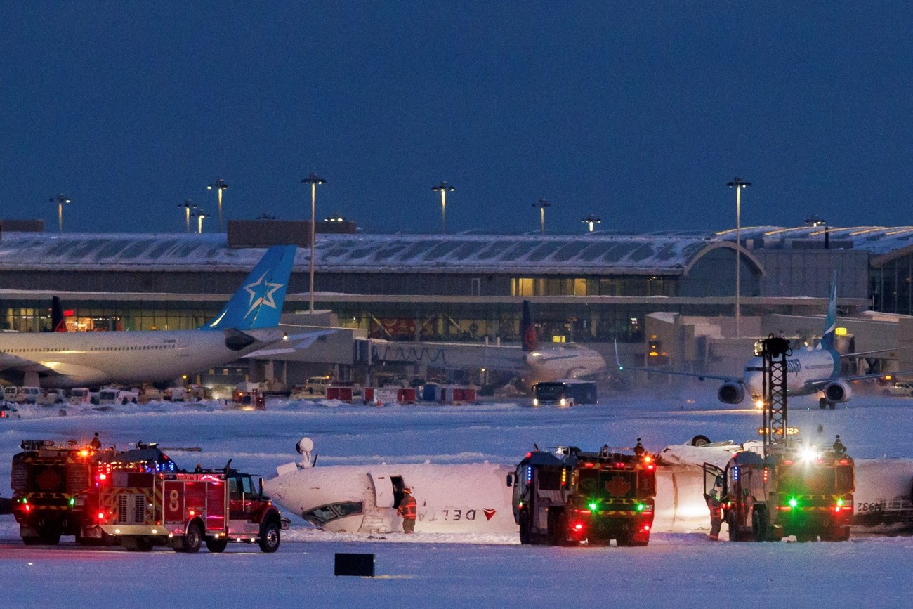 أصيب 17 شخصاً على الأقل بجروح في تحطّم طائرة على متنها 80 شخصاً، هم 76 راكباً وطاقم من أربعة أفراد، خلال هبوطها الاثنين في مطار تورونتو بكندا وانقلابها، بحسب سلطات المطار.وقالت شركة الطيران إن رحلة إنديفور 4819 كانت بصدد الهبوط نحو الساعة 15:30 في أكبر مدينة في كندا آتية من مينيابوليس في ولاية مينيسوتا الأميركية عندما تحطّمت.ونقل جميع المصابين إلى مستشفيات المنطقة سواء بسيارات الإسعاف أو المروحيات، وفق الجهاز.ولم يتّضح في الحال سبب الحادث ولا تبيّن كيف انقلبت الطائرة على ظهرها وتقطّع جناحاها، لكنّ السلطات أكّدت عدم ضلوع أيّ طائرة أخرى في الحادث.