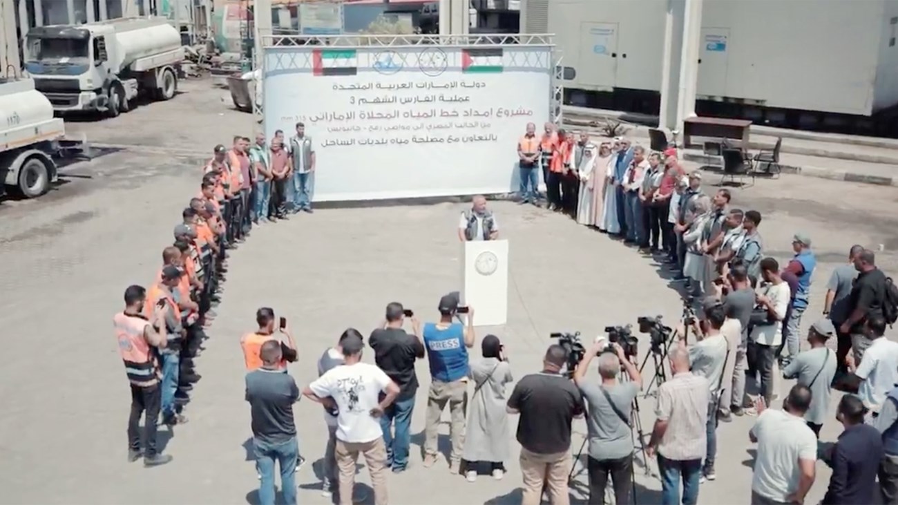 أعلنت عملية “الفارس الشهم 3” الإماراتية عن بدء تنفيذ مشروع إنساني لإمداد المياه المحلاة من الجانب المصري إلى جنوب قطاع غزة، عبر خط ناقل جديد يُعد الأكبر من نوعه، في إطار التدخلات العاجلة لمعالجة الكارثة المائية التي تعصف بالقطاع المحاصر.وخلال مؤتمر صحفي عُقد في مقر مصلحة مياه بلديات الساحل بمدينة دير البلح، أعلنت “العملية” عن إنشاء خط مياه ناقل 315 ملم وطول 6.7 كيلومتر، يربط بين محطة التحلية التي أنشأتها الإمارات في الجانب المصري ومنطقة النزوح الواقعة بين محافظتي خانيونس ورفح.ويهدف المشروع إلى خدمة نحو 600 ألف نسمة من السكان المتضررين، بتوفير 15 لتراً من المياه المحلاة لكل فرد يومياً، في ظل تدمير أكثر من 80% من مرافق المياه بفعل الأحداث الصعبة في قطاع غزة.وأكد شريف النيرب، المسؤول الإعلامي لعملية “الفارس الشهم 3” في قطاع غزة، أن “مشروع خط المياه الجديد ليس مجرد استجابة طارئة لأزمة العطش في غزة، بل هو امتداد لنهج إماراتي ثابت في دعم الشعب الفلسطيني، وخاصة في ظل الظروف الكارثية التي خلّفتها الحرب”.وأضاف: “الإمارات كانت ولا تزال المساند الأول لغزة في مختلف القطاعات، بدءاً من إنشاء محطات تحلية المياه، مروراً بتزويد المصلحة بصهاريج المياه، وحفر الآبار، وصيانة الشبكات، وانتهاءً بهذا المشروع الحيوي الذي يسعى لتأمين مياه الشرب للمناطق الأكثر تضرراً”.وأعرب المهندس عمر شتات، نائب مدير عام مصلحة مياه بلديات الساحل للشؤون الفنية، عن شكره لدولة الإمارات، التي لم تتوانَ منذ اليوم الأول للحرب عن خدمة أهلنا في قطاع غزة، من خلال سلسلة مشاريع كبرى ودعم متواصل، ساهم في تسهيل عمل البلديات ومؤسسات المجتمع المحلي، وضمان وصول المياه وتحسين الخدمات الأساسية في ظل ظروف بالغة الصعوبة.وثمّن خليل أبو شمالة، ممثل المجتمع المدني في قطاع غزة، الدور الحيوي الذي تؤديه دولة الإمارات في دعم القطاع، مشيداً بالمشاريع الإنسانية التي تنفذها ضمن عملية “الفارس الشهم 3″، مؤكداً أن هذه المشاريع تمنح السكان فرصة حقيقية للحصول على مياه صحية وآمنة، ما يُعزز من قدرتهم على الصمود في وجه التحديات والأزمات المستمرة التي تعصف بالقطاع.ويُعد هذا المشروع حلقة جديدة ضمن سلسلة المبادرات التي أطلقتها عملية “الفارس الشهم 3” لمعالجة تداعيات انهيار البنية التحتية، خاصة في ملف المياه، وتواصل جهودها لتخفيف الكارثة الإنسانية وتعزيز صمود السكان.