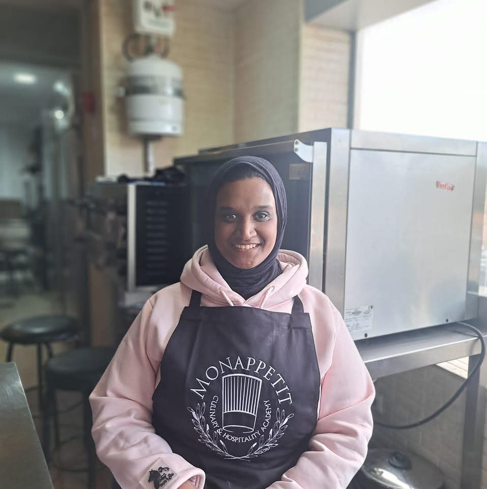 “استغلت فرصة منحة تدريبية مقدّمة من قطاع السياحة والفنادق، ودرست المطبخ السّاخن لمدة 3 أشهر، ثم عملت في كاترينج لبناني بمنطقة الشيخ زايد. لكن مع حلول جائحة كورونا وتوقف العمل، لم تستسلم، بل استثمرت وقتها في تطوير مهاراتها، وبدأت العمل أونلاين من منزلها، تارة في المطبخ الساخن وأخرى في المعجنات.