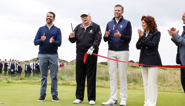 اختتم الرئيس الأميركي، دونالد ترامب، زيارة قصيرة إلى اسكتلندا زخرت بإعلانات دبلوماسية متنوعة، بافتتاح مضمار جديد للجولف ضمن مجمّع “ترامب الدولي للجولف” في “بالميدي” على الساحل الشرقي.وقصّ ترامب شريط الافتتاح بنفسه، بحضور نجليه دونالد جونيور وإريك.وقال الرئيس الأميركي أمام الضيوف، وبينهم رئيس الوزراء الاسكتلندي، جون سويني: “الأمر رائع. أتطلّع إلى اللعب اليوم. سنقوم بجولة لعب سريعة ومن ثم أعود الى واشطن وسنطفئ الحرائق أينما كانت في العالم”.ويضم المضمار الجديد، بحسب وثيقة وزعت على الصحافة، “أكبر ملجأ طبيعي محصن في العالم”، مع كثبان رملية ومساحات خضراء تطل على المياه، وهو مصمم بعناية خاصة للحفاظ على البيئة.وكان ترامب قد استقبل، يومي الأحد والاثنين، في مجمع جولف آخر يحمل اسمه في تورنبري غرب اسكتلندا، رئيسة المفوضية الأوروبية، أورسولا فون دير لايين أولاً، ولاحقاً رئيس الوزراء البريطاني، كير ستارمر.وأعلن مع فون دير لايين اتفاقا تجارياً يقضي بفرض رسوم جمركية أميركية بنسبة 15% على السلع الأوروبية المستوردة في الولايات المتحدة.كما عقد مع ستارمر مؤتمراً صحفياً تعهد فيه بزيادة الدعم لغزة.
