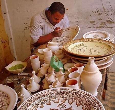 وفي الأقصر، بعيدًا عن ضوضاء العاصمة، يظهر مركز “KRFT” كمشهد من لوحة ملوّنة، حيث يجتمع الفن والتاريخ والسياحة في مكان واحد. الزائر هنا لا يكتفي بالمشاهدة، بل يجلس على طاولة العمل، يلمس الطين بيديه، يشكل الفخار أو يخط نقشًا على قطعة خشب، فيتذوق تجربة عاشها المصري القديم قبل آلاف السنين. الفكرة ليست في بيع منتج، بل في إعادة الحرفة إلى وجدان من يراها ويمارسها.حتى القرى البعيدة لها نصيبها من الحلم. في قرية تونس بالفيوم —مركز عمراني سكني امتزج بالتراث بعد وصول الحرفية على يد فنانين، منها مدرسة الفخار التي أسستها السويسرية إيفلين بورِيه، وبها تخرج من كل بيت أنامل تصنع الفخار، كأن القرية بأكملها ورشة مفتوحة. الأطفال يتعلمون من الكبار، والنساء يزخرفن الأواني بخطوط رقيقة، والهواء مشبع برائحة الطين المشوي، بينما الزوار الأجانب يلتقطون الصور ويحملون معهم قطعة من روح المكان.