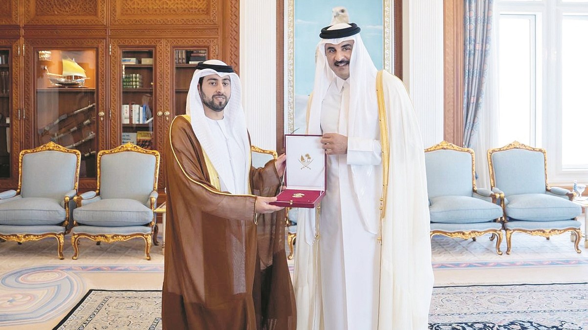 منح صاحب السمو الشيخ تميم بن حمد آل ثاني، أمير دولة قطر الشقيقة، الشيخ زايد بن خليفة بن سلطان آل نهيان سفير الإمارات العربية المتحدة لدى دولة قطر «وسام الوجبة» تقديراً لجهوده في تعزيز علاقات التعاون الأخوي بين البلدين الشقيقين، وذلك بمناسبة انتهاء فترة عمله سفيراً للدولة لدى الدوحة.وتمنى صاحب السمو الشيخ تميم بن حمد آل ثاني للشيخ زايد بن خليفة آل نهيان خلال استقباله في مكتبه بالديوان الأميري «الخميس» دوام التوفيق والنجاح.من جانبه، أعرب السفير عن شكره وتقديره لصاحب السمو الشيخ تميم بن حمد آل ثاني على ما لقيه من دعم ومساندة أسهمت في نجاح مهامه الدبلوماسية، وتوطيد العلاقات الأخوية بين البلدين.