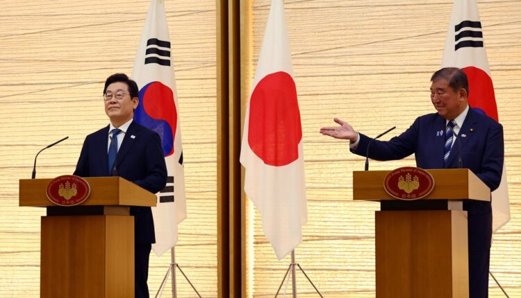 اتفق رئيس الوزراء الياباني شيجيرو إيشيبا والرئيس الكوري الجنوبي لي جيه-ميونج، على توثيق العلاقات الأمنية والاقتصادية قبل القمة المقررة بين لي والرئيس الأميركي دونالد ترامب يوم الاثنين.وفي أول زيارة رسمية لليابان منذ توليه منصبه في يونيو الماضي، اجتمع لي مع إيشيبا في مقر إقامة رئيس الوزراء في طوكيو لبحث العلاقات الثنائية وتوثيق التعاون الأمني مع الولايات المتحدة بموجب اتفاقية ثلاثية وقعها سلفاهما.وقال إيشيبا، في بيان مشترك مع لي عقب لقائهما “مع تزايد حدة البيئة الاستراتيجية المحيطة ببلدينا، تزداد أهمية علاقاتنا وكذلك التعاون الثلاثي مع الولايات المتحدة”.واتفق الزعيمان على استئناف الجهود الدبلوماسية وتوسيع التبادلات مثل برامج عطلات العمل وتعزيز التعاون في مجالات الدفاع والأمن الاقتصادي والذكاء الاصطناعي وغيرها. كما تعهدا بتنسيق أوثق ضد التهديدات النووية والصاروخية من كوريا الشمالية.وقال لي، وهو يقف بجوار إيشيبا “اتفقنا على أن التعاون الراسخ بين كوريا الجنوبية والولايات المتحدة واليابان له أهمية قصوى في الوضع الدولي المتغير سريعا وقررنا خلق حلقة قوية يؤدي فيها تطوير العلاقات بين كوريا الجنوبية واليابان إلى تعاون أقوى”.ومن المتوقع أن يناقش لي وترامب في واشنطن المخاوف الأمنية مثل تلك المتعلقة بالصين وكوريا الشمالية، ومساهمة سول المالية مقابل تمركز القوات الأميركية في كوريا الجنوبية.