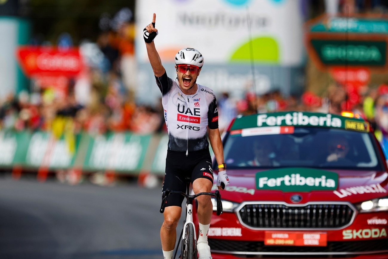 فاز الأسترالي جاي فاين دراج فريق الامارات اكس ار جي بفارق يقارب الدقيقة، بلقب بالمرحلة السادسة من طواف إسبانيا، واستغل فاين معرفته الجيدة بمسارات السباق الصعبة، لينطلق منفرداً نحو القمة ويقطع خط النهاية وحيداً، محققاً فوزه الثالث في مسيرته، ضمن مراحل الطواف، ومواصلاً تألقه مع فريق الإمارات- اكس ار جي الذي حقق الانتصار رقم 75 هذا الموسم.جاء الفوز بعد 24 ساعة فقط من فوز الفريق في سباق الزمن للفرق بمدينة فيجيريس.وساهم زميله فيليكس جروسشارتنر في تعزيز موقع الفريق ضمن المتسابقين الأساسيين في الصعود الأخير، فيما شهدت المرحلة منافسة شرسة بين كبار المتسابقين على لقب الترتيب العام، حيث تمكن جواو ألميدا من تحقيق مركز متقدم.