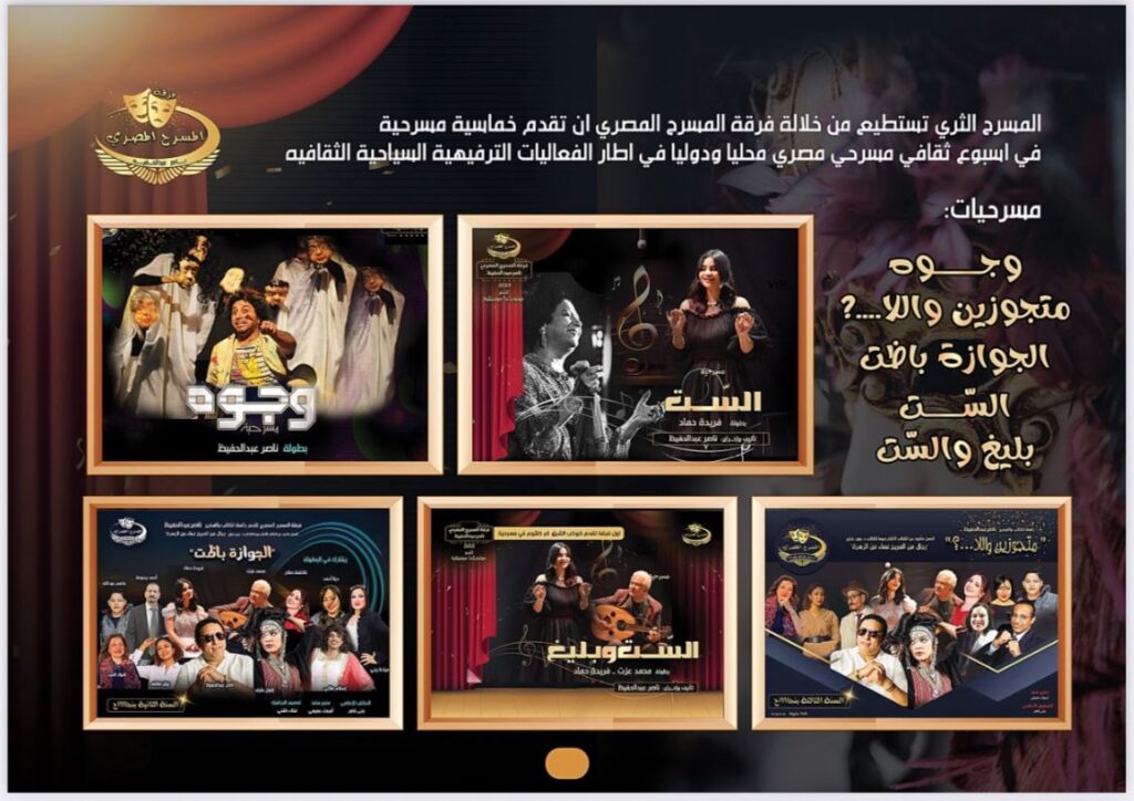 بعد سلسلة النجاحات الجماهيرية والنقدية ، تواصل فرقة المسرح المصري بقيادة الفنان والكاتب الصحفي ناصر عبدالحفيظ تقديم عروضها المميزة التي تجمع الكوميديا والغناء وبين المتعة الفنية .
