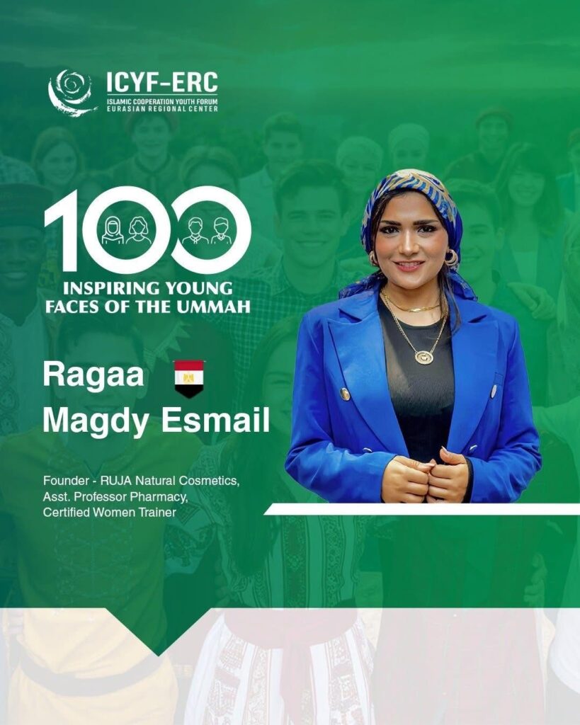 Among those stands out Dr. Ragaa Magdy Ismail—Assistant Professor at the Faculty of Pharmacy, Ahram Canadian University; General Supervisor of Student Activities; Student Union Pioneer; and Founder of RUJA Natural Cosmetics. A young woman who has successfully woven together the paths of science, creativity, and entrepreneurship, proving that life is measured not by years, but by achievements and the value one gives.