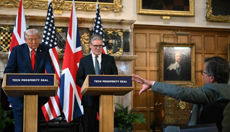 وقّع الرئيس الأميركي دونالد ترامب مع رئيس الوزراء البريطاني كير ستارمر، اتفاقا لتعزيز التعاون التكنولوجي بين بلديهما تجسد من خلال الإعلان عن استثمارات بعشرات المليارات، في اليوم الثاني من زيارته الرسمية إلى المملكة المتحدة.ووعد ترامب أن يتيح الاتفاق “لأميركا وحلفائنا البريطانيين قيادة مستقبل الذكاء الاصطناعي”، مؤكدا “الروابط الوثيقة” بين بلاده والمملكة المتحدة. وقال ترامب إن هذا الاتفاق “سيسمح بتعزيز التعاون بين السلطات العامة والأوساط الجامعية والقطاع الخاص في مجالات مثل الذكاء الاصطناعي”.وبعد مراسم ملكية حظي بها ترامب في قصر ويندسور حيث استقبله الملك تشارلز الثالث الأربعاء، انتقل الرئيس الأميركي اليوم الخميس إلى تشيكرز مقر إقامة ستارمر الريفي، للبحث في قضايا سياسية واقتصادية. ووقع الزعيمان في حديقة المقر الواقع، على بُعد 70 كيلومترا من العاصمة لندن، شراكة في مجالات مثل الذكاء الاصطناعي والطاقة النووية محاطَين بممثلين عن شركات التكنولوجيا العملاقة مايكروسوفت وإنفيديا وألفابت (غوغل).ورحب ستارمر بـ”أكبر برنامج استثماري من نوعه في تاريخ بريطانيا”. وبلغ إجمالي الاستثمارات الأميركية في المملكة المتحدة 150 مليار جنيه إسترليني (172,7 مليار يورو) أُعلن عنها منذ الأحد، أبرزها لمايكروسوفت وغوغل وصندوق بلاكستون الاستثماري. وتعتزم شركة الأدوية البريطانية “جي اس كي” أيضا تخصيص 30 مليار دولار أميركي على مدى خمس سنوات لاستثمارات في الولايات المتحدة.كذلك عقد ترامب وستارمر اجتماعا ثنائيا تناول قضايا دبلوماسية حساسة، من أوكرانيا إلى غزة. وقال ستارمر إنهما “يقدّران بعضهما حقا”. ونظرا لإعجاب ترامب بوينستون تشرشل، أطلع ستارمر الرئيس الأميركي على أرشيف رئيس الوزراء البريطاني الأسبق.