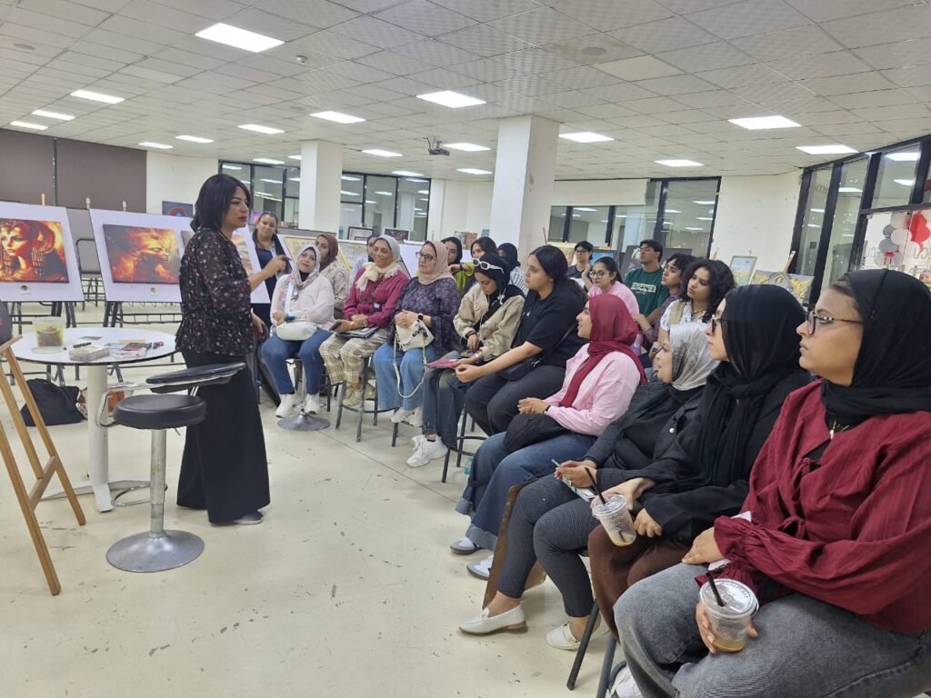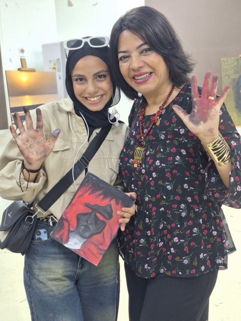 Her painting of a rural market in Upper Egypt on a bright morning did not merely depict a location—it mirrored the warmth and authenticity of Egyptian life, from the vendors and children to the women and elders. “I want art to be lived, not just observed,” she says. “I want the viewer to feel as if they are truly part of the scene.”