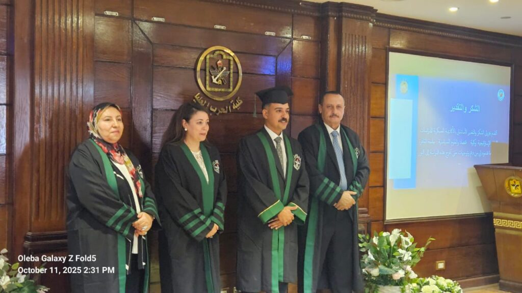 عُقدت جلسة المناقشة في مقر الأكاديمية العسكرية للدراسات العليا والاستراتيجية، في حضور أساتذة وباحثين وعدد من أفراد أسرة وأصدقاء الباحث، وسط أجواء علمية اتسمت بالفخر والاعتزاز بهذا الإنجاز الأكاديمي المتميز.