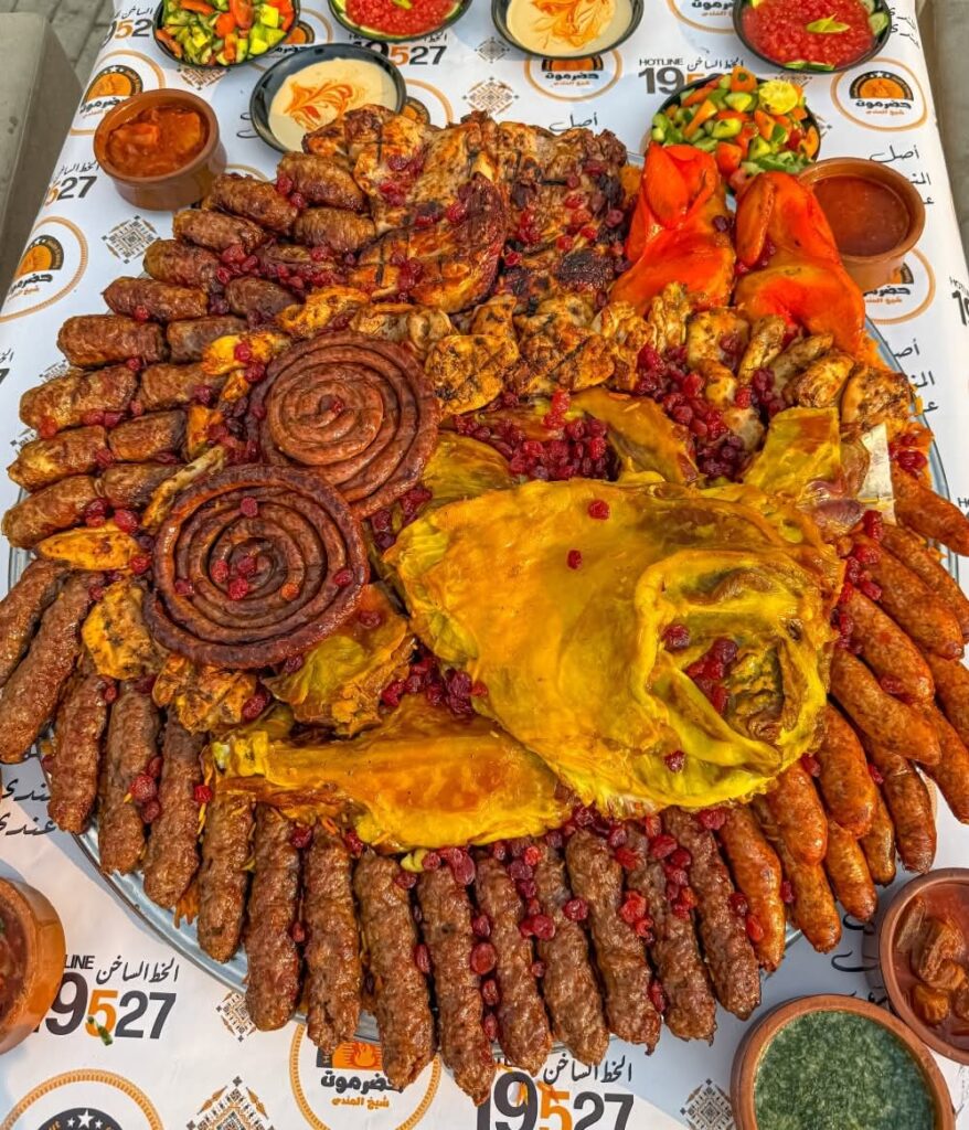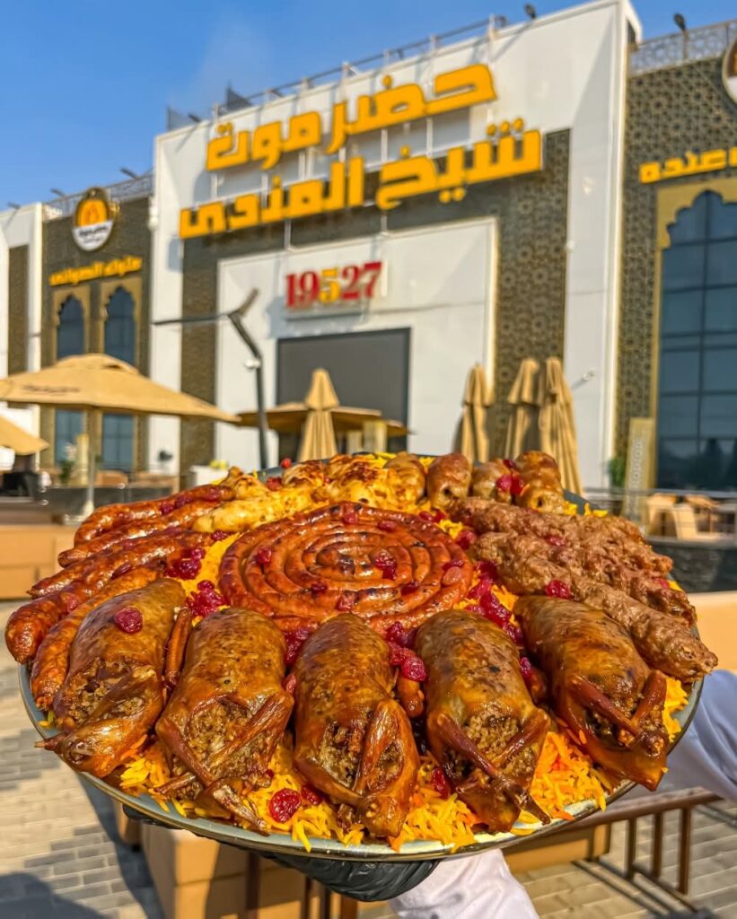 وتُقدَّم جميع الأطباق بالطريقة الحضرمية التقليدية، باستخدام الحطب الطبيعي والتوابل الأصلية التي تمنح المندي والمظبي والمقلقل نكهة فريدة تجمع بين الأصالة والجودة.