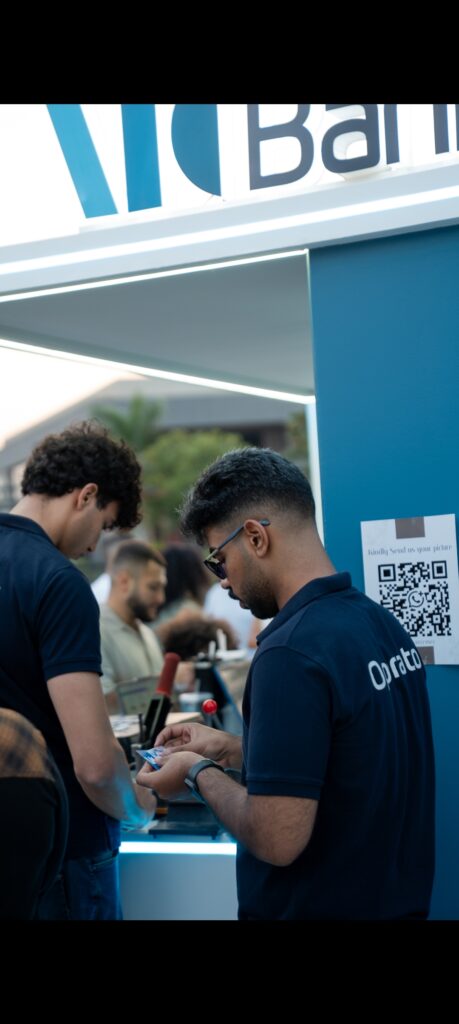 حيث أعدّ البنك مجموعة من الأنشطة والمسابقات التفاعلية والهدايا الفورية التي تهدف إلى تعزيز الارتباط العاطفي مع العلامة التجارية وإتاحة الفرصة للجمهور للتعرف على هوية البنك بشكل ممتع وغير تقليدي.كما يولي البنك اهتمامًا خاصًا بإبراز هوية البنك البصرية وشعاره المميز في مختلف نقاط التفاعل، من خلال تصميمات دعائية حديثة وأركان تفاعلية تحمل طابع البنك العصري، بما يسهم في تعزيز تواجد العلامة التجارية وترسيخها في أذهان الزوار.