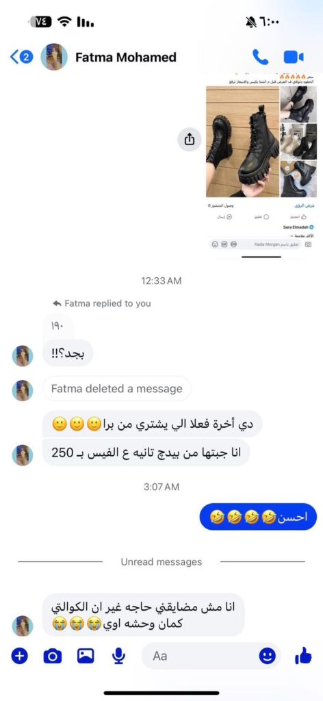 تؤمن ندى أن سر النجاح لا يكمن فقط في المنتج الجيد، بل في الصدق مع العملاء.تقول بثقة: “مش سهل إن حد يشتري شوز من صورة على الإنترنت، لكن احنا كسبنا ثقة الناس بخدمتنا. بنوفر معاينة قبل الاستلام، وحق استبدال في حال وجود أي مشكلة. وبصور 99% من الموديلات بإيدي علشان العميل يطمن إن الحاجة اللي شايفها هي اللي هيوصلها بالظبط.”