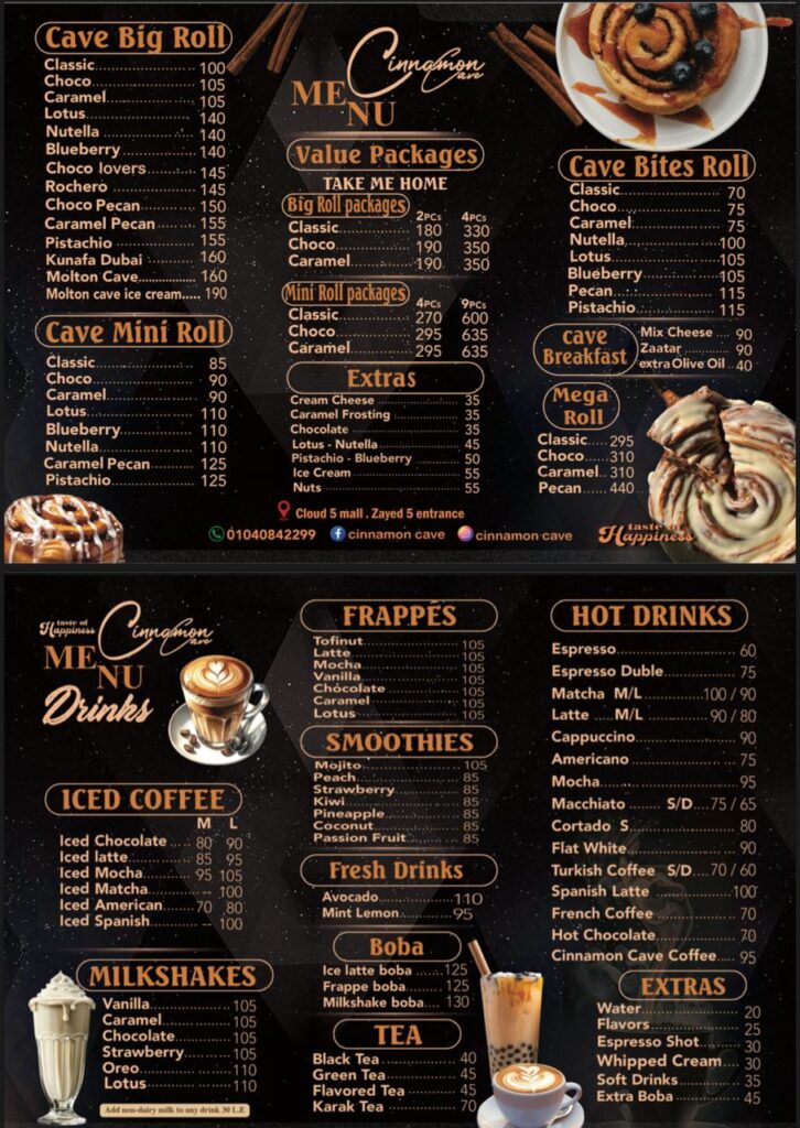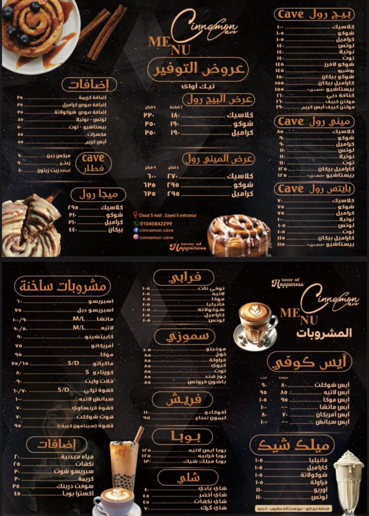ولأن الإبداع لا يقتصر على المذاق، فقد وسّع «سينامون كيف» قائمته لتشمل مجموعة متنوعة من المشروبات مثل الميلك شيك والفرابيه، مع مرونةٍ دائمة في متابعة ما يقدّمه السوق.