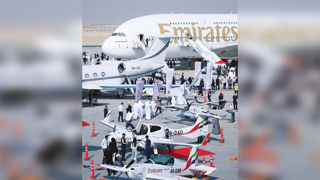 شهد معرض دبي للطيران 2025 في يومه الثاني، الإعلان عن المزيد من الصفقات التجارية والعسكرية التي زادت قيمتها الإجمالية عن 183.6 مليار درهم (50 مليار دولار)، ليقفز إجمالي قيمة صفقات المعرض لليومين الأول والثاني عن 336.6 مليار درهم (91.7 مليار دولار).وبلغ إجمالي عدد الطائرات ضمن الصفقات التجارية المعلنة، أمس، 243 طائرة من مختلف الطرازات منها 150 طائرة إيرباص طلبية «فلاي دبي» و32 طائرة إيرباص لـ«الاتحاد للطيران» و40 طائرة إيرباص لطيران «أوروبا»، بالإضافة إلى 15 طائرة بوينج من طراز دريملاينر787 لصالح «طيران الخليج» و6 طائرات إيرباص للخطوط الجوية الإثيوبية. وارتفع بذلك الإجمالي الطائرات ضمن طلبيات اليومين الأول والثاني إلى 335 طائرة، منها 228 طائرة إيرباص و105 طائرات لصالح شركة بوينج.وبلغت قيمة الصفقات المبرمة لصالح وزارة الدفاع لدولة الإمارات خلال اليوم الثاني من معرض دبي للطيران، 6.26 مليار درهم، شملت ثلاث صفقات محلية بقيمة 6.2 مليار درهم، وصفقة دولية واحدة، ليصل بذلك إجمالي الصفقات المبرمة لليومين الأول والثاني إلى 10.04 مليار درهم