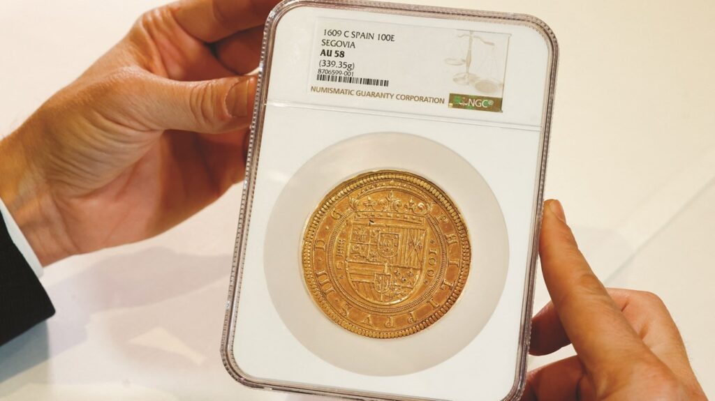 بيعت عملة ذهبية إسبانية من أوائل القرن السابع عشر، بسعر وصل إلى 3 ملايين و500 ألف دولار في مزاد، مسجلة رقماً قياسياً لعملة أوروبية، على ما أعلنت دار «نوميسماتيكا جينيفينسيس» المنظمة للمزاد. وأفادت الدار بأن العملة التي سُكّت عام 1609، في عهد فيليب الثالث، وجدت مشترياً مقابل ثلاثة ملايين و490 ألف دولار، وبلغ وزنها 340 جراماً من المعدن الثمين