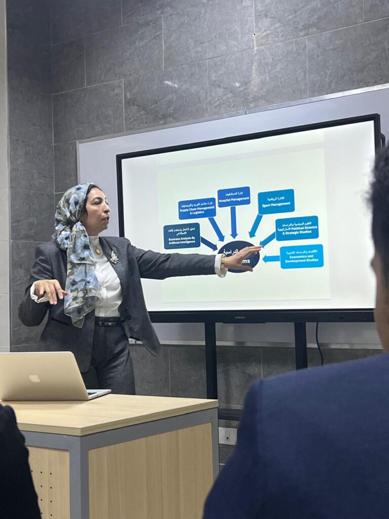 توضح أن النظرة التقليدية للبرامج الدراسية لم تعد قادرة على مواكبة المتغيرات المتسارعة، وكان لا بد من التغيير الجذري. فتم إنشاء قسم علمي جديد هو قسم نظم معلومات الأعمال، وإطلاق برامج نوعية مثل نظم معلومات الأعمال (BIS)، وبرنامج إدارة سلاسل التوريد واللوجستيات، الذي يخدم طبيعة المنطقة الاقتصادية لقناة السويس. كما جرى استحداث درجة الدكتوراه المهنية في إدارة الأعمال، إلى جانب إعداد برامج بينية حديثة تشمل تحليل الأعمال باستخدام الذكاء الاصطناعي، والإدارة الرياضية، وإدارة المستشفيات، بهدف ربط الكلية بالمجتمع واحتياجاته الفعلية.هذا التوجه لم يكن قرارًا إداريًا بقدر ما كان رؤية فكرية تنطلق من فهم عميق لعلاقة الجامعة بسوق العمل، وهو ما يتضح في فلسفتها تجاه البرامج الحديثة.