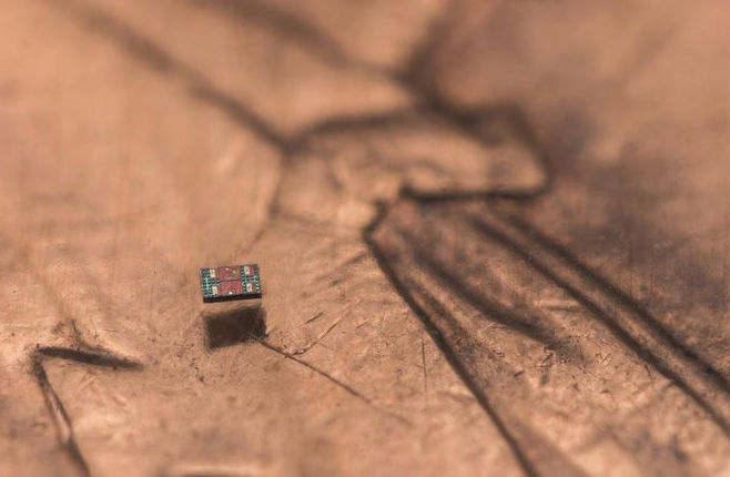 “دماغ” بحجم حبة غبار وتم الإنجاز عند دمج نظام حركة مبتكر من جامعة بنسلفانيا مع حاسوب فائق الصغر طوّره فريق جامعة ميشيغان، يُعد من أصغر الحواسيب المستقلة في العالم.