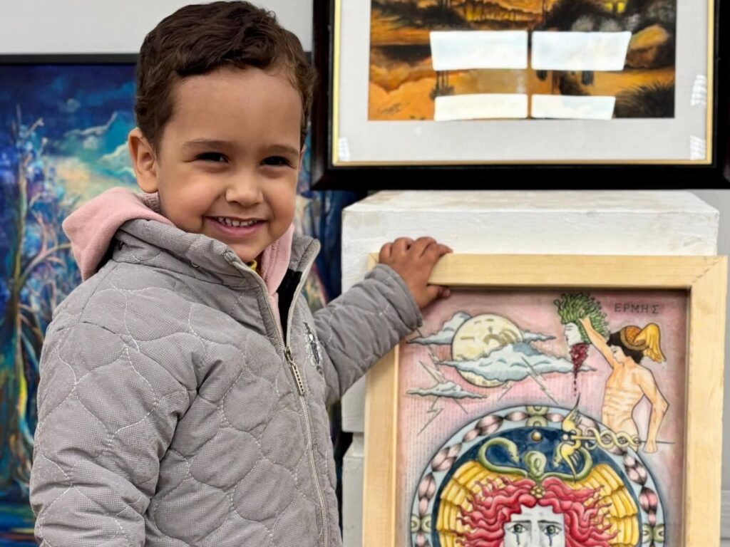 Adam, Dr. Amani Zahran’s Grandson… The Youngest Visitor Steals the Spotlight at “Magic of Art” Exhibition