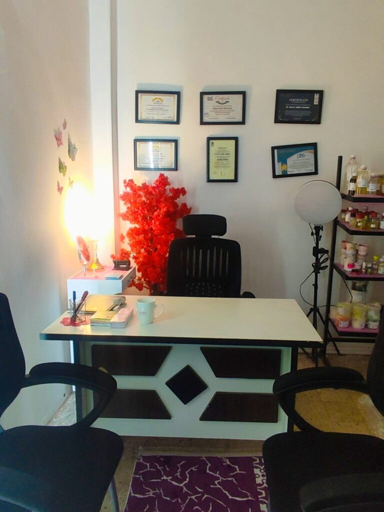 أما عن د. ولاء أنور، فهي كيميائية وأخصائية تجميل غير جراحي، حاصلة على بكالوريوس علوم، بدأت رحلتها المهنية مدفوعة برغبة حقيقية في تقديم علاج مختلف، يرفض التعميم ويبحث عن الحل المناسب لكل حالة على حدة. ومع الوقت، اتجهت إلى دراسة وتصنيع التركيبات الطبيعية والعلاجية لمشكلات البشرة والشعر، مستفيدة من خلفيتها العلمية ودراساتها المتخصصة في هذا المجال.