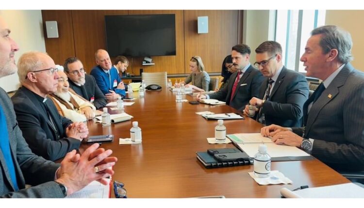 ومثّل الجانب الأميركي في اللقاء رايلي بارنز، مساعد وزير الخارجية للديمقراطية وحقوق الإنسان والعمل، ومارك ووكر، مستشار الرئيس الأميركي لشؤون الحرية الدينية الدولية، فيما شارك عن الجانب البريطاني ديفيد سميث، المبعوث الخاص لحرية الدين أو المعتقــد، إلى جــانب جاستن ويلبي، رئيس أساقفة كانتربري الأسبق، واللورد روك.وأعرب معالي الشيخ عبدالله بن بيّه، في مستهل اللقاء، عن شكره وتقديره لوزارة الخارجية الأميركية على الدعوة وحسن الاستقبال، مؤكداً عمق علاقات الصداقة والشراكة الاستراتيجية التي تجمع دولة الإمارات العربية المتحدة بكلٍّ من الولايات المتحدة والمملكة المتحدة وما يجمع الدول الثلاث من رؤية مشتركة تعتبر أن السِّلم والاستقرار ركيزتان أخلاقيتان واستراتيجيتان لصون كرامة الإنسان وتعزيز الأمن والازدهار العالميين.