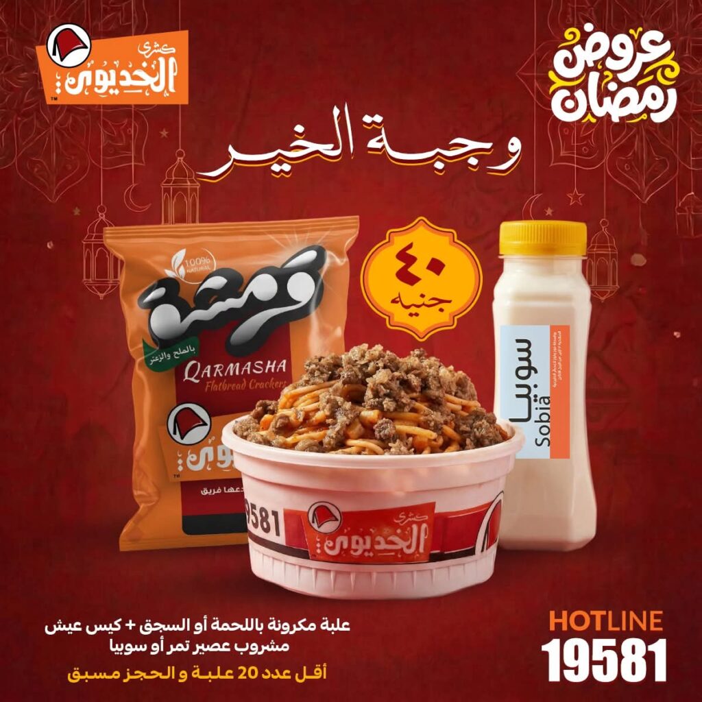* التنوع والمواكبة: إلى جانب الطبق الرئيسي، يقدم “الخديوي” تشكيلة من الطواجن والحلويات الشرقية التي تكمل المائدة الرمضانية، مما يجعله وجهة متكاملة لكل أفراد الأسرة.