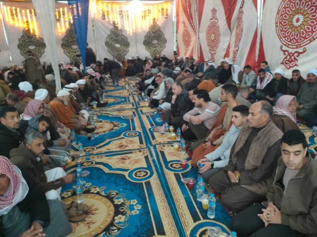 ومع انطلاق آذان المغرب في قلب ديار الدواغرة، اجتمع الحضور في مشهد مهيب يجسد “البيت السيناوي الكبير”، وقد حرص الشيخ شادي الهواري على استقبال ضيوفه من مختلف ربوع المحافظة، مؤكداً أن هذا اللقاء يأتي استكمالاً لنهج الآباء والأجداد في الحفاظ على النسيج الواحد وتجاوز كل التحديات بالوحدة والتكاتف.