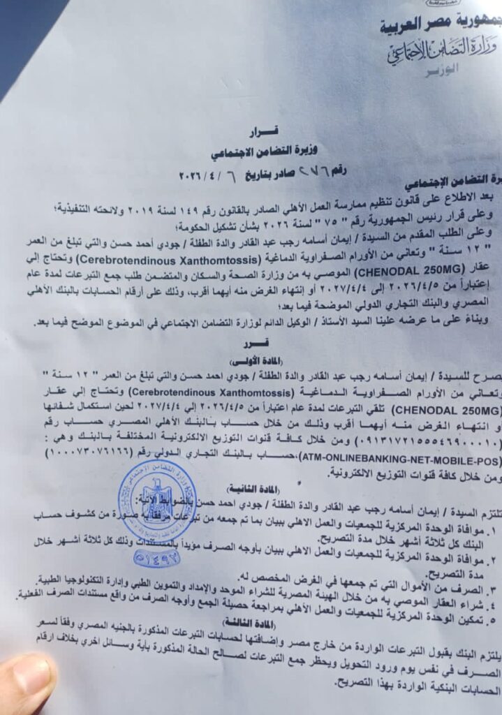 في واحدة من أكثر القصص الإنسانية إيلامًا، تعيش طفلة مصرية تبلغ من العمر 12 عامًا معاناة يومية بعد تشخيصها بمرض نادر للغاية يُعرف باسم CTX – Cerebrotendinous Xanthomatosis، وهو مرض وراثي نادر يصيب أعدادًا محدودة جدًا حول العالم، ويُعد ظهوره في مصر من الحالات النادرة للغاية، وسط تأكيدات بأنها من أوائل الحالات التي تم رصدها محليًا، ومن بين عدد قليل جدًا في منطقة الشرق الأوسط.