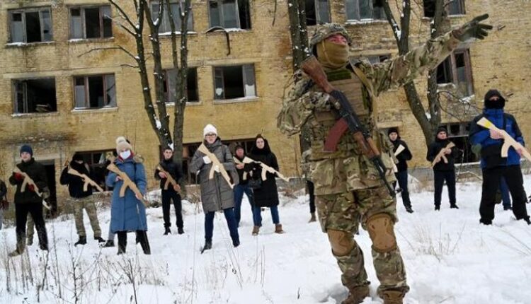 ووثقت صور كثيرة ومقاطع فيديو نشرتها وسائل إعلام ونشطاء على مواقع التواصل الاجتماعي، أفرادا من وحدات الجيش الأوكراني وهم يدربون المتطوعين في كييف على أسلحة خشبية مزيفة.